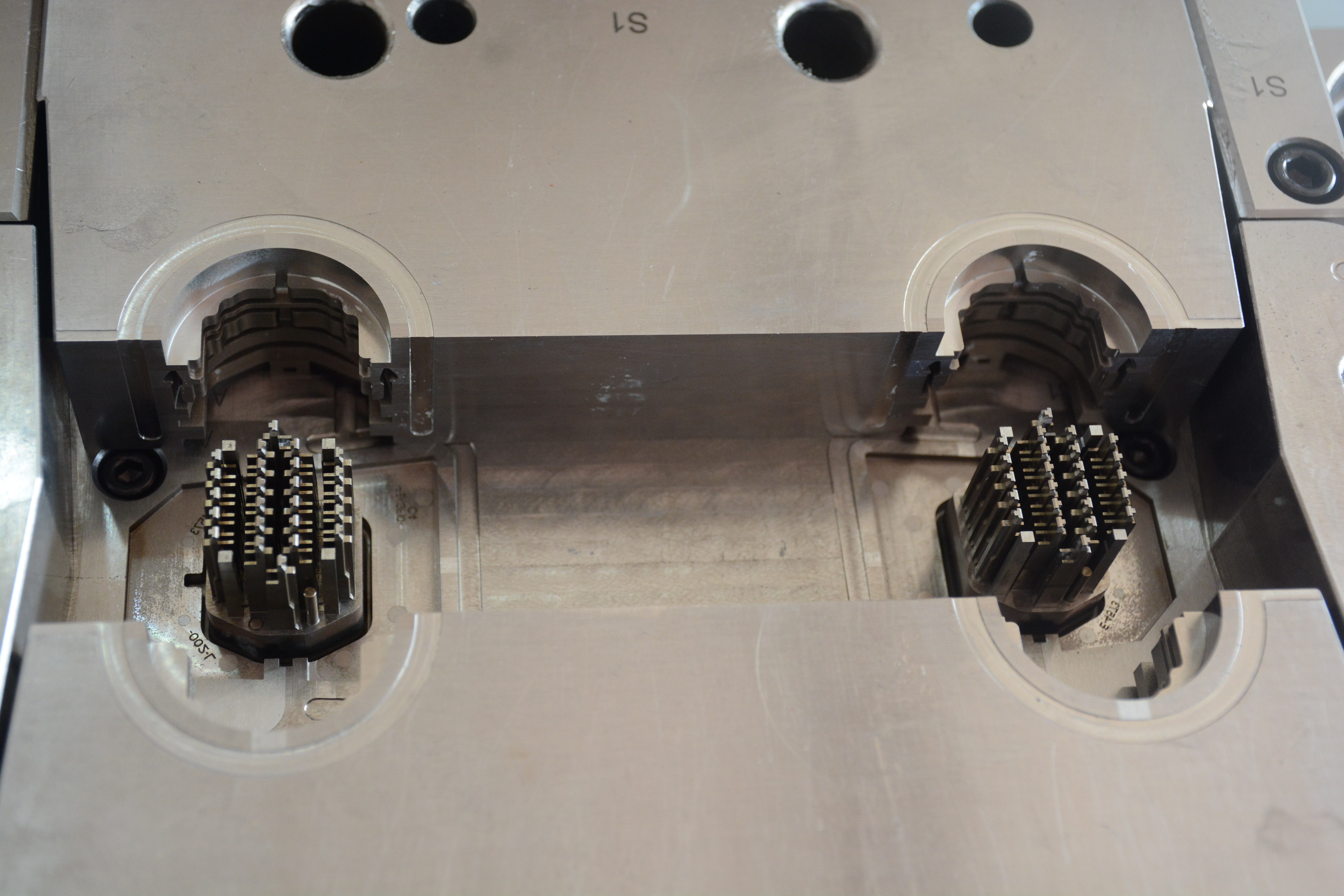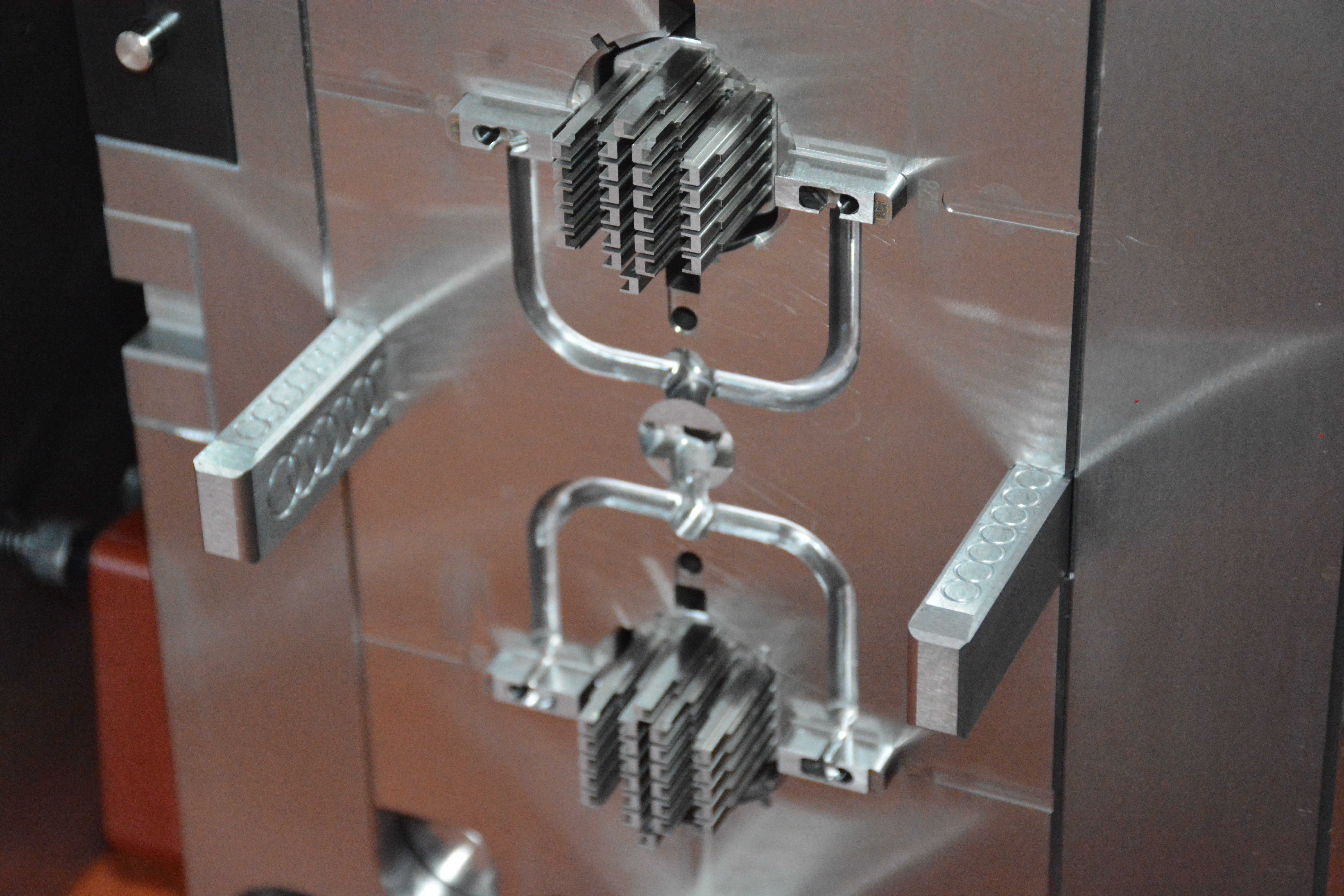 BMW end cap 1000T大型雙色模具,前模頂出需要開模同時(shí)沿分型面頂出,合模需要分型面推前模頂出系統(tǒng)回位,經(jīng)過我們工程團(tuán)隊(duì)前期跟客人提出的有效建議對產(chǎn)品的優(yōu)化,結(jié)果模具試模一次成功。
